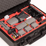 - Configuration 2: You have the Mavic 2 and the standard remote control and more than 6 batteries. In this case, you can safely stow 3 additional batteries in the multifunctional compartment with the help of the battery foam module. Thus there is space for a total of 9 batteries in the case.