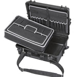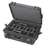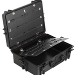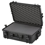 Wasser- und staubdichter Koffer in schwarz, inkl. Schaumstoffeinlagen mit Würfelstanzung zur individuellen Anpassung. Innenmaß: 500 x 350 x 194mm Tiefe Deckel+Boden: 58 + 136mm Außenmaß: 555 x 428 x H...