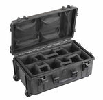 Wasser- und staubdichter Fotokoffer in schwarz, mit eingesetzter gepolsterter, verstellbarer Fototasche und Mehrzwecktasche im Deckel. Innenmaß: 520 x 290 x H200mm Außenmaß: 585 x 361 x H238mm Tiefe Deckel+Boden: 45...